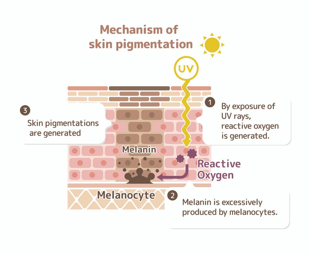 [1] – Ahene AB, Saxena S, Nacht S. Photoprotection of solubilized and microdispersed melanin particles. Investigative Dermatology. 1994 Feb 1 (Vol. 102, No. 2, pp. 268-268). [2] – Maresca V, Flori E, Briganti S, Camera E, Cario-André M, Taïeb A, Picardo M. UVA-induced modification of catalase charge properties in the epidermis is correlated with the skin phototype. J Invest Dermatol. 2006 Jan;126(1):182-90. doi: 10.1038/sj.jid.5700021. [3] – Morgan AM, Lo J, Fisher DE. How does pheomelanin synthesis contribute to melanomagenesis?: Two distinct mechanisms could explain the carcinogenicity of pheomelanin synthesis. Bioessays. 2013 Aug;35(8):672-6. doi: 10.1002/bies.201300020. [4] – Hearing VJ, Tsukamoto K. Enzymatic control of pigmentation in mammals. FASEB J. 1991 Nov;5(14):2902-9. [5] – Oetting WS, King RA. Molecular basis of albinism: mutations and polymorphisms of pigmentation genes associated with albinism. Hum Mutat. 1999;13(2):99-115. doi: 10.1002/(SICI)1098-1004(1999)13:2<99::AID-HUMU2>3.0.CO;2-C. [6] – Borovanský J., Wiley I. Melanins and Melanosomes Biosynthesis, Biogenesis, Physiological, and Pathological Functions. John Wiley & Sons. 2011 Aug 15. [7] – Valverde P, Healy E, Sikkink S, Haldane F, Thody AJ, Carothers A, Jackson IJ, Rees JL. The Asp84Glu variant of the melanocortin 1 receptor (MC1R) is associated with melanoma. Hum Mol Genet. 1996 Oct;5(10):1663-6. doi: 10.1093/hmg/5.10.1663. [8] – del Marmol V, Ito S, Jackson I, Vachtenheim J, Berr P, Ghanem G, Morandini R, Wakamatsu K, Huez G. TRP-1 expression correlates with eumelanogenesis in human pigment cells in culture. FEBS Lett. 1993 Aug 2;327(3):307-10. doi: 10.1016/0014-5793(93)81010-w. [9] – Guy GP Jr, Machlin SR, Ekwueme DU, Yabroff KR. Prevalence and costs of skin cancer treatment in the U.S., 2002-2006 and 2007-2011. Am J Prev Med. 2015 Feb;48(2):183-187. doi: 10.1016/j.amepre.2014.08.036. [10] – Koh HK, Geller AC, Miller DR, Grossbart TA, Lew RA. Prevention and early detection strategies for melanoma and skin cancer. Current status. Arch Dermatol. 1996 Apr;132(4):436-43. [11] – Sander M, Sander M, Burbidge T, Beecker J. The efficacy and safety of sunscreen use for the prevention of skin cancer. CMAJ. 2020 Dec 14;192(50):E1802-E1808. doi: 10.1503/cmaj.201085. [12] – Bradford PT, Goldstein AM, Tamura D, Khan SG, Ueda T, et al. Cancer and neurologic degeneration in xeroderma pigmentosum: long term follow-up characterises the role of DNA repair. J Med Genet. 2011 Mar;48(3):168-76. doi: 10.1136/jmg.2010.083022. [13] – Hemnani T, Parihar MS. Reactive oxygen species and oxidative DNA damage. Indian J Physiol Pharmacol. 1998 Oct;42(4):440-52. [14] – Lebedev AT, Bavcon Kralj M, Polyakova OV, Detenchuk EA, Pokryshkin SA, Trebše P. Identification of avobenzone by-products formed by various disinfectants in different types of swimming pool waters. Environ Int. 2020 Apr;137:105495. doi: 10.1016/j.envint.2020.105495. [15] – Sofen B, Prado G, Emer J. Melasma and Post Inflammatory Hyperpigmentation: Management Update and Expert Opinion. Skin Therapy Lett. 2016 Jan;21(1):1-7. [16] – Deo KS, Dash KN, Sharma YK, Virmani NC, Oberai C. Kojic Acid vis-a-vis its Combinations with Hydroquinone and Betamethasone Valerate in Melasma: A Randomized, Single Blind, Comparative Study of Efficacy and Safety. Indian J Dermatol. 2013 Jul;58(4):281-5. doi: 10.4103/0019-5154.113940. [17] – Tomita Y, Takeda A, Okinaga S, Tagami H, Shibahara S. Human oculocutaneous albinism caused by single base insertion in the tyrosinase gene. Biochem Biophys Res Commun. 1989 Nov 15;164(3):990-6. doi: 10.1016/0006-291x(89)91767-1. [18] – Grønskov K, Ek J, Brondum-Nielsen K. Oculocutaneous albinism. Orphanet J Rare Dis. 2007 Nov 2;2:43. doi: 10.1186/1750-1172-2-43. [19] – Ezzedine K, Lim HW, Suzuki T et al; Vitiligo Global Issue Consensus Conference Panelists. Revised classification/nomenclature of vitiligo and related issues: the Vitiligo Global Issues Consensus Conference. Pigment Cell Melanoma Res. 2012 May;25(3):E1-13. doi: 10.1111/j.1755-148X.2012.00997.x. [20] – Rodrigues M, Ezzedine K, Hamzavi I, et al. Vitiligo Working Group. Current and emerging treatments for vitiligo. J Am Acad Dermatol. 2017 Jul;77(1):17-29. [21] – Choi W, Yin L, Smuda C, Batzer J, Hearing VJ, Kolbe L. Molecular and histological characterization of age spots. Exp Dermatol. 2017 Mar;26(3):242-248. doi: 10.1111/exd.13203